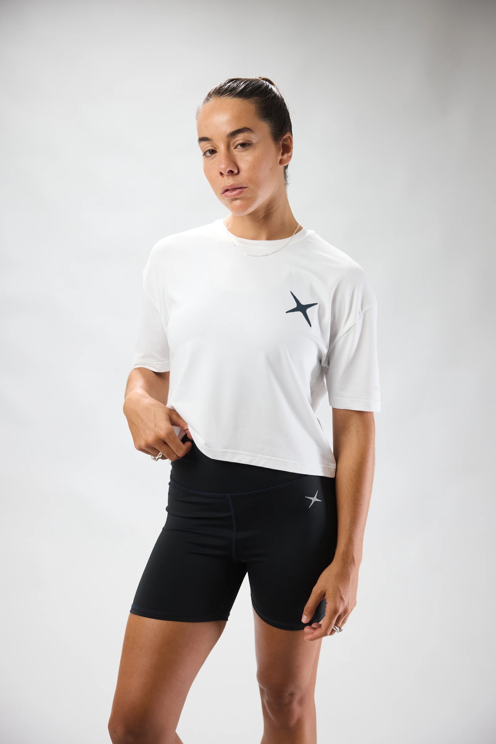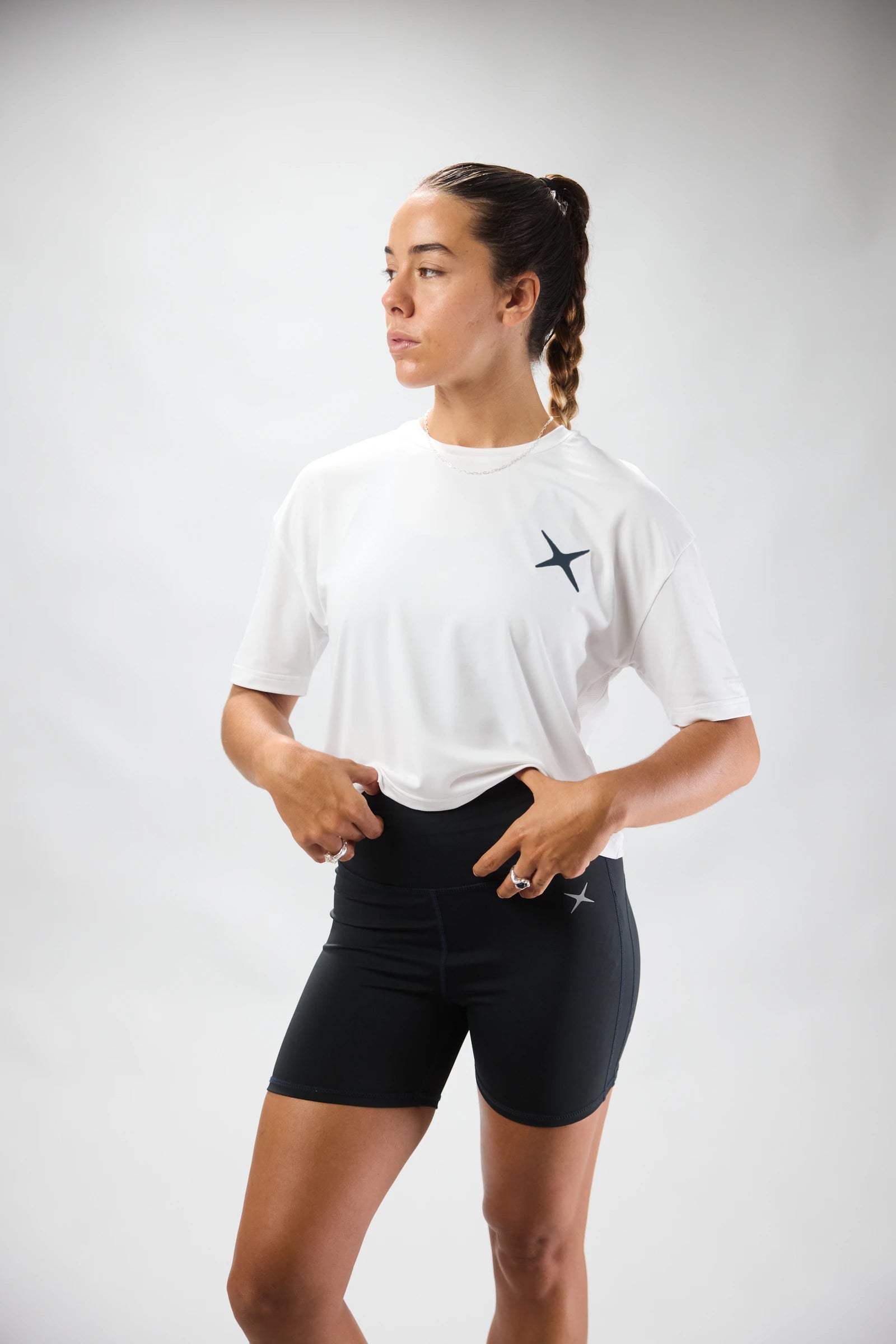 Camisola desportiva fabricada em poliéster reciclado, de secagem rápida, UV50 e repelente à água. Logótipo refletor na parte frontal central e traseira central.